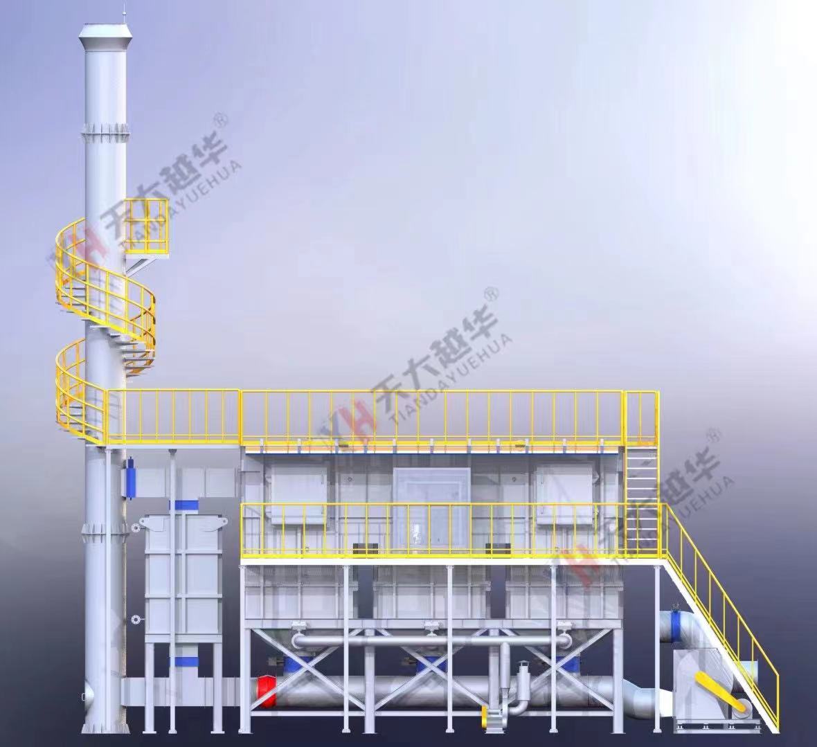如此周期性運行,廢氣在燃燒室內氧化分解,燃燒室內溫度維持在設定溫度(一般為800~850℃)。當RTO進氣口的廢氣濃度達到一定值時,VOCs氧化釋放的熱量能夠維持RTO蓄熱和放熱的能量儲備,則此時RTO不需要使用燃料就能夠維持燃燒室內的溫度。