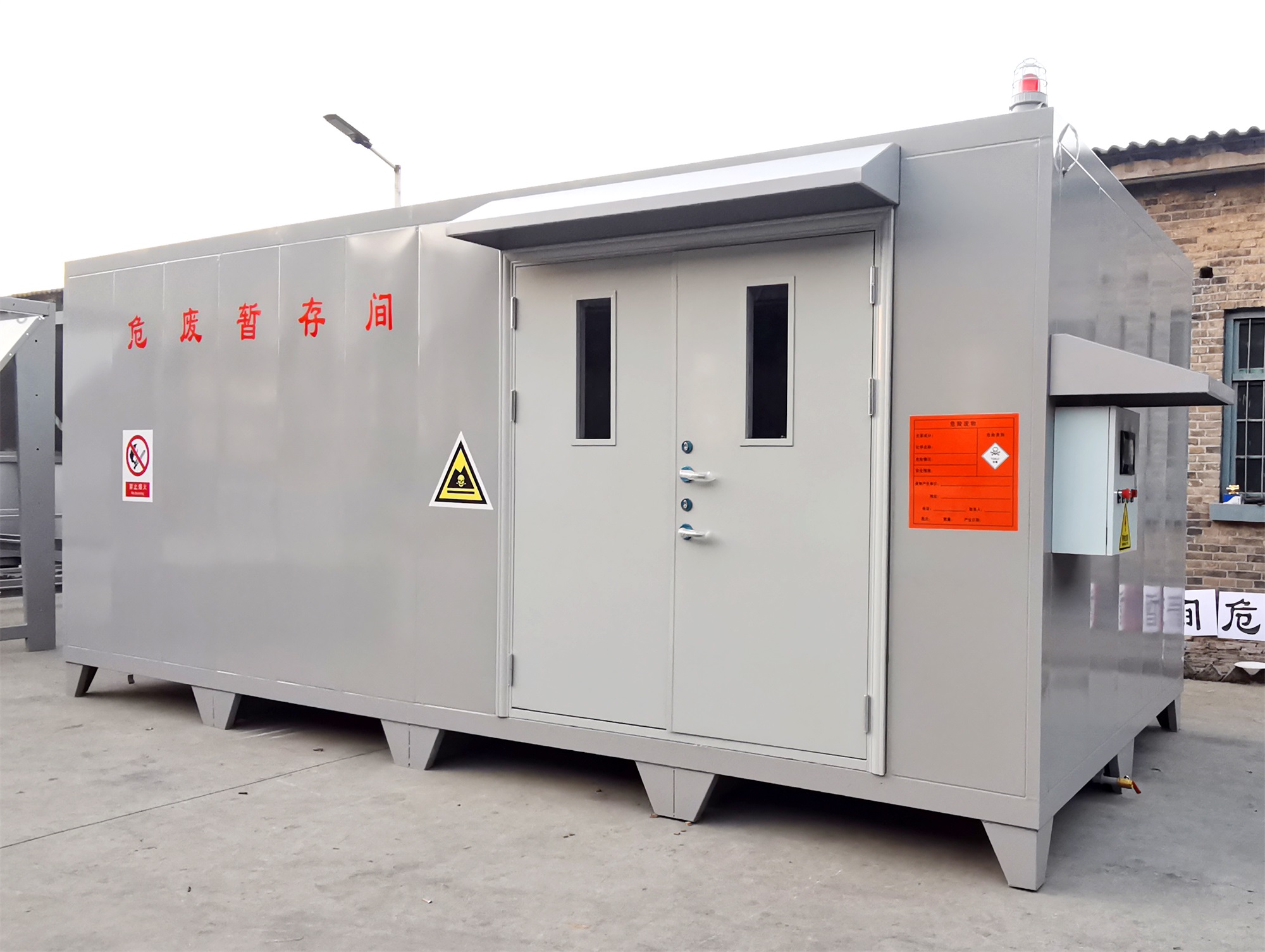 (6)不相容的危險廢物必/須分開存放,并設(shè)有隔離間隔斷。目前,工業(yè)企業(yè)大部分都還是使用企業(yè)內(nèi)部的普通房間(或是車間內(nèi)隔開的區(qū)域)來作為危廢暫存場地,場地基本無做防護處理,且大多數(shù)企業(yè)的危廢均無密封包裝,成為廠區(qū)的廢氣無組織擴散源。且企業(yè)現(xiàn)有的危廢暫存間不具備防火、防腐蝕等功能,如果稍有不慎,那些瓶裝、罐裝的易燃的氣體、液體就會發(fā)生傾倒、泄漏,易釀成泄毒、火災(zāi)、爆炸等事故,后果不堪設(shè)想,因此急需設(shè)計一種專用的工業(yè)企業(yè)危險廢棄物暫貯存或暫貯存的箱式可移動危廢倉庫。